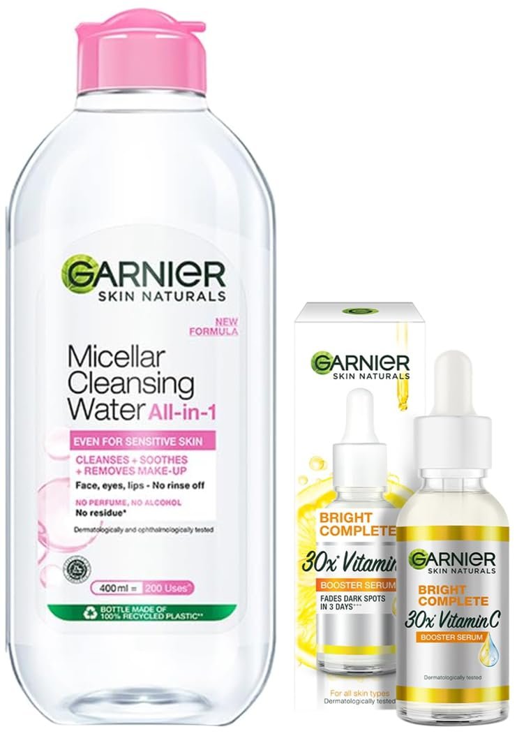 Garnier Bright Complete VITAMIN C Booster Face Serum, 30ml & Garnier Skin Naturals, Micellar Cleansing Water, 400ml