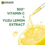 Product 1: VITAMIN C HAS BRIGHTENING AND SPOT REDUTION PROPERTIES. The Garnier Vitamin C serum harnesses this power of Vitamin C and is enriched with Japanese Yuzu lemon and 30X Vitamin C**, making the face serum a concentrated brightening formula that fades all types of spots, even dark spots, and acne marks. (*vs. day cream)
