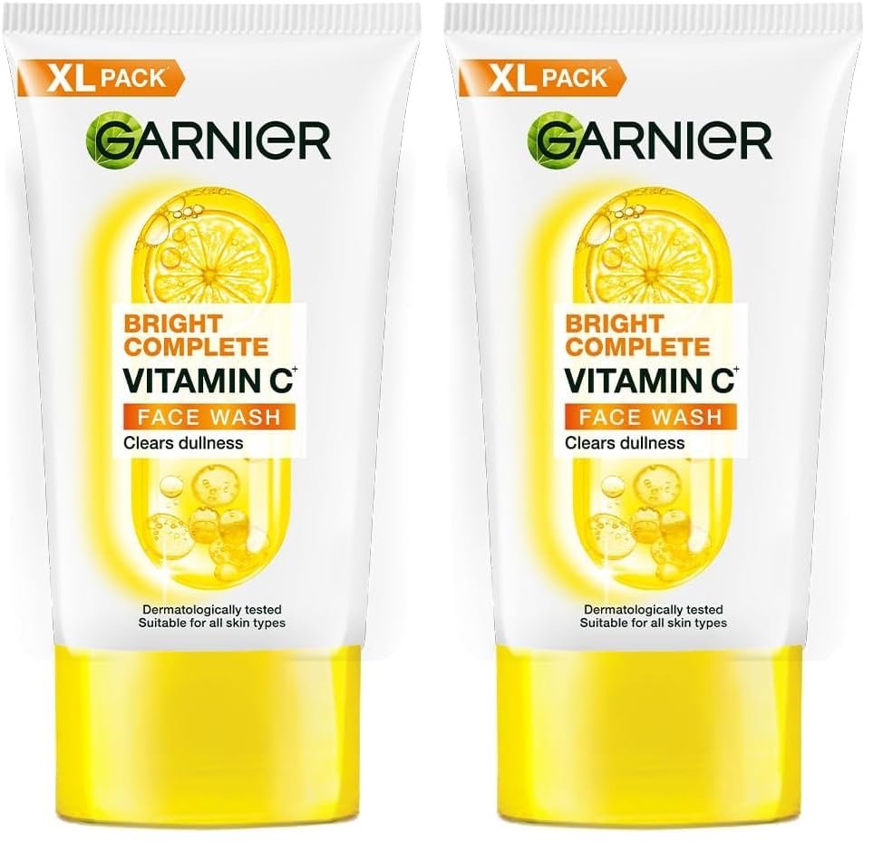 Garnier Bright Complete Vitamin C Face Wash – Vitamin C Face Wash For Brightening & Glowing Skin | Daily Cleanser Suitable For all Skin Types | Vit C Facewash for Women & Men, 160g (Pack of 2)