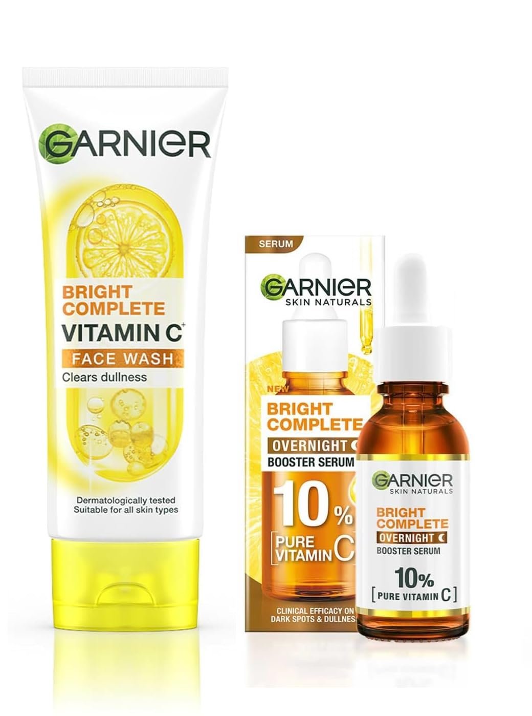GARNIER Bright Complete Vitamin C Foaming Facewash-100g+ Garnier OverNight Vitamin C Serum With 10% Pure Vitamin C for Bright Skin (2 Item In Set)