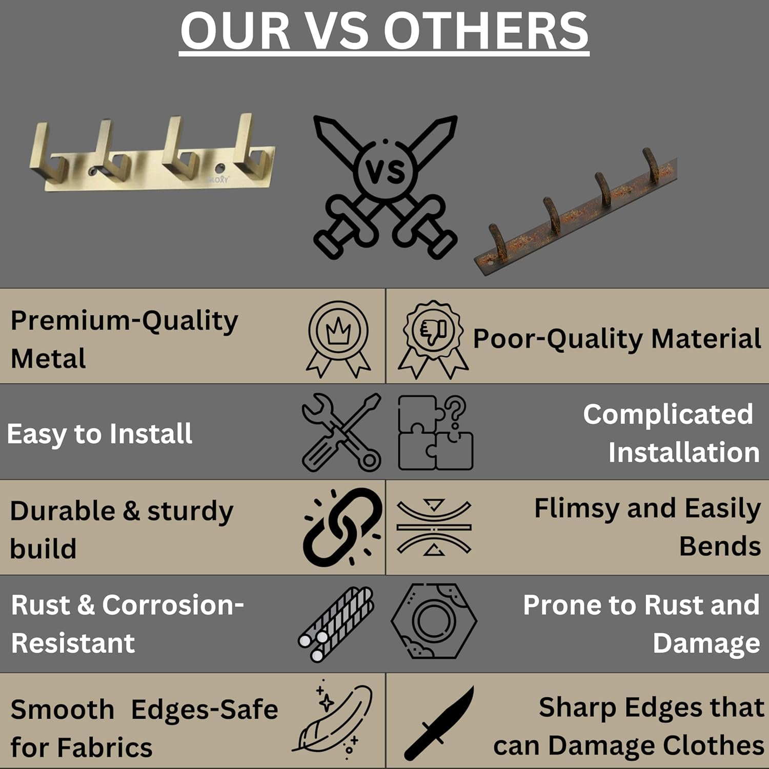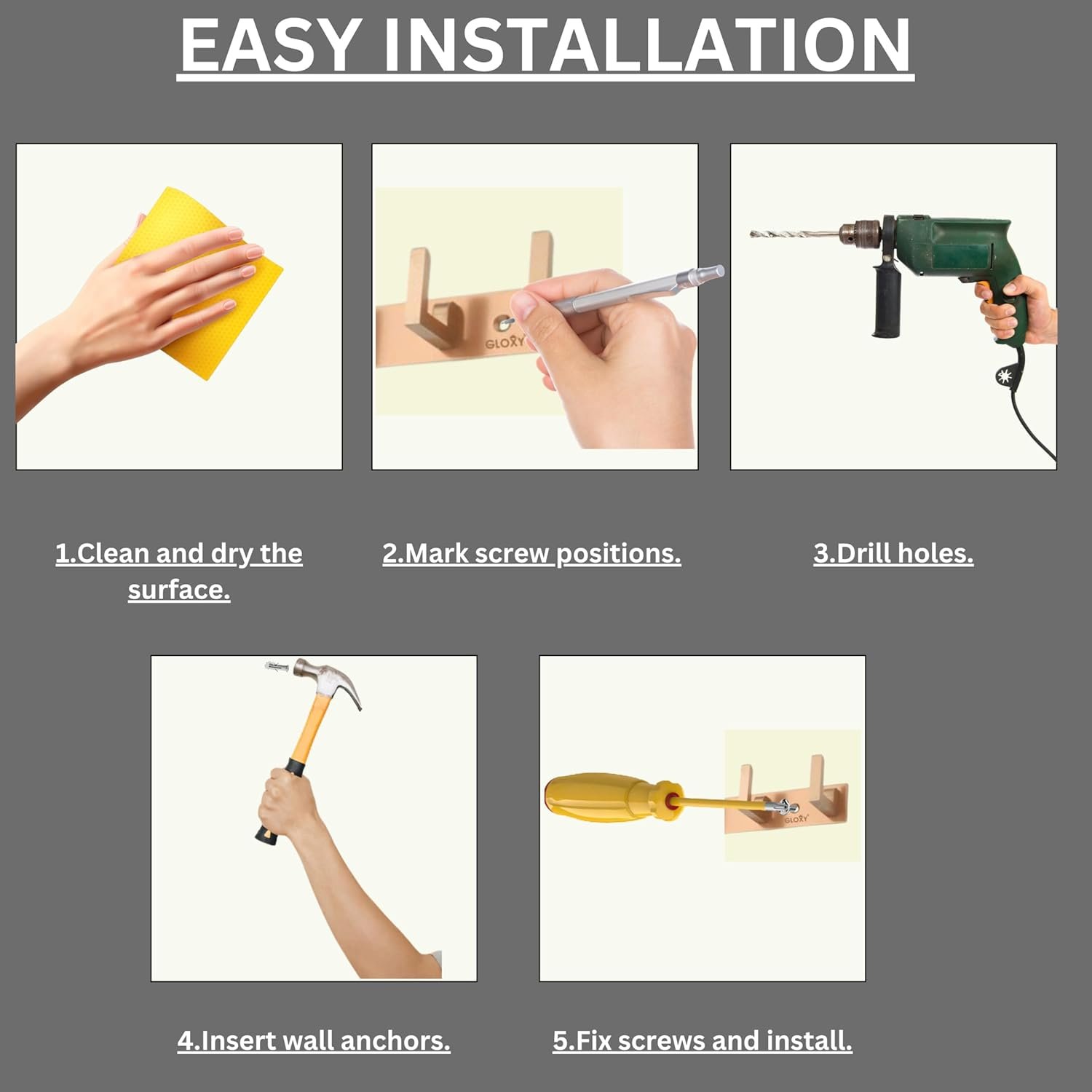 EASY INSTALLATION WALL HANGER HOOKS- All Screws & Plugs required for installation is included in Packaging.