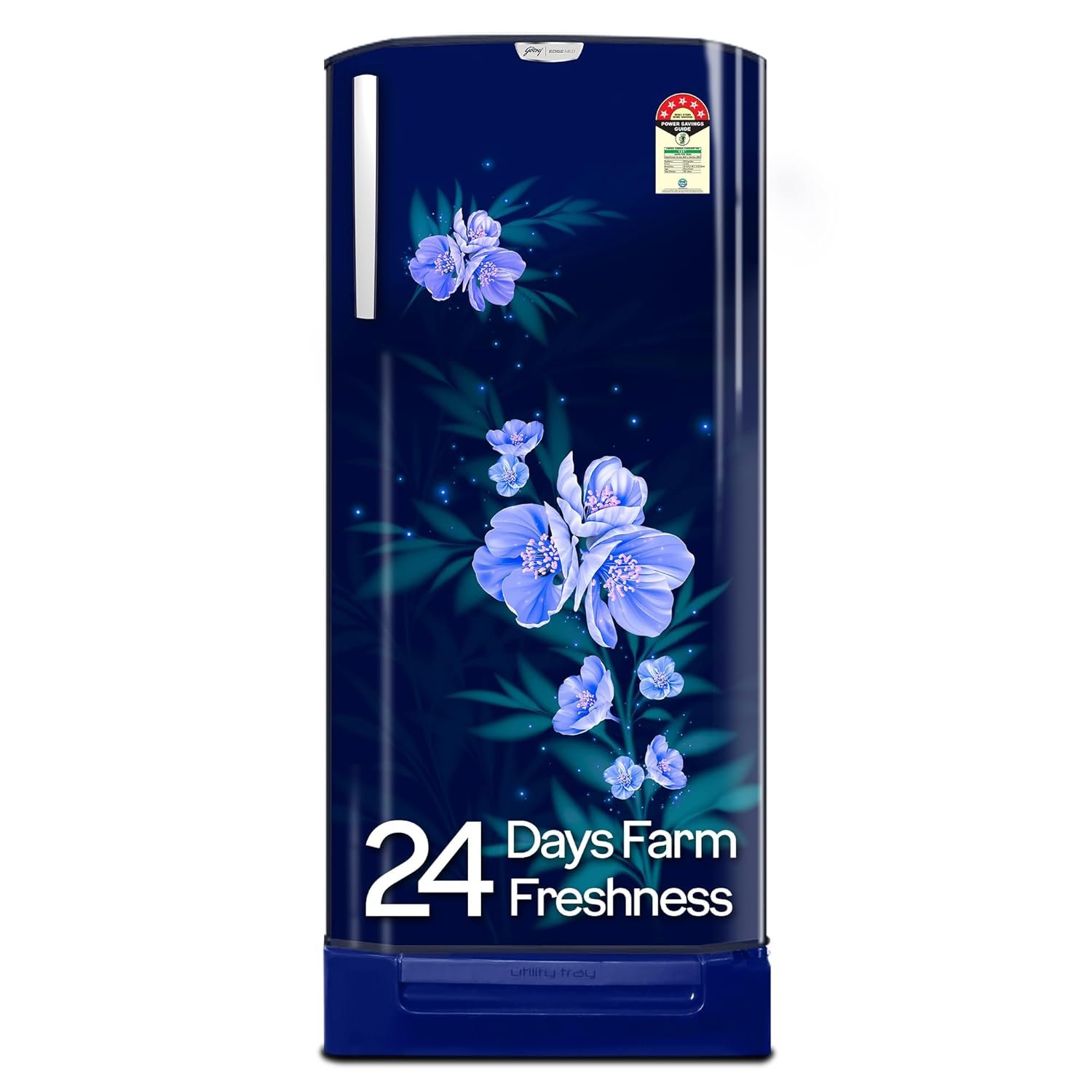 Godrej 180 L 5 Star | Turbo Cooling Technology | 24 Days Farm Freshness | Base Drawer | Toughened Glass shelves | Direct Cool Single Door Refrigerator (RD EDGENEO 207E TDF MP BL, Maple Blue)