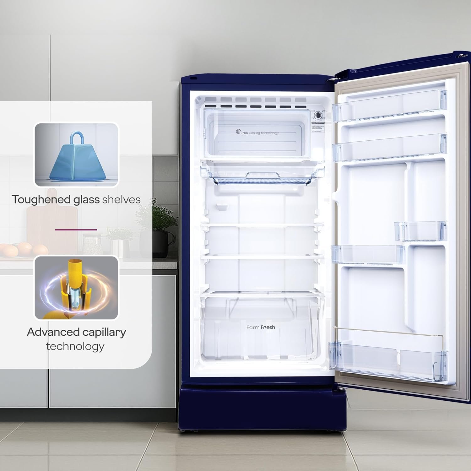 Godrej 183 L 2 Star| Farm Fresh Crisper Technology| Turbo Cooling Technology | Toughened Glass Shelved | Jumbo Vegetable Tray | Direct Cool Single Door Refrigerator (RD R190BN THF BR BL, Berry Blue)