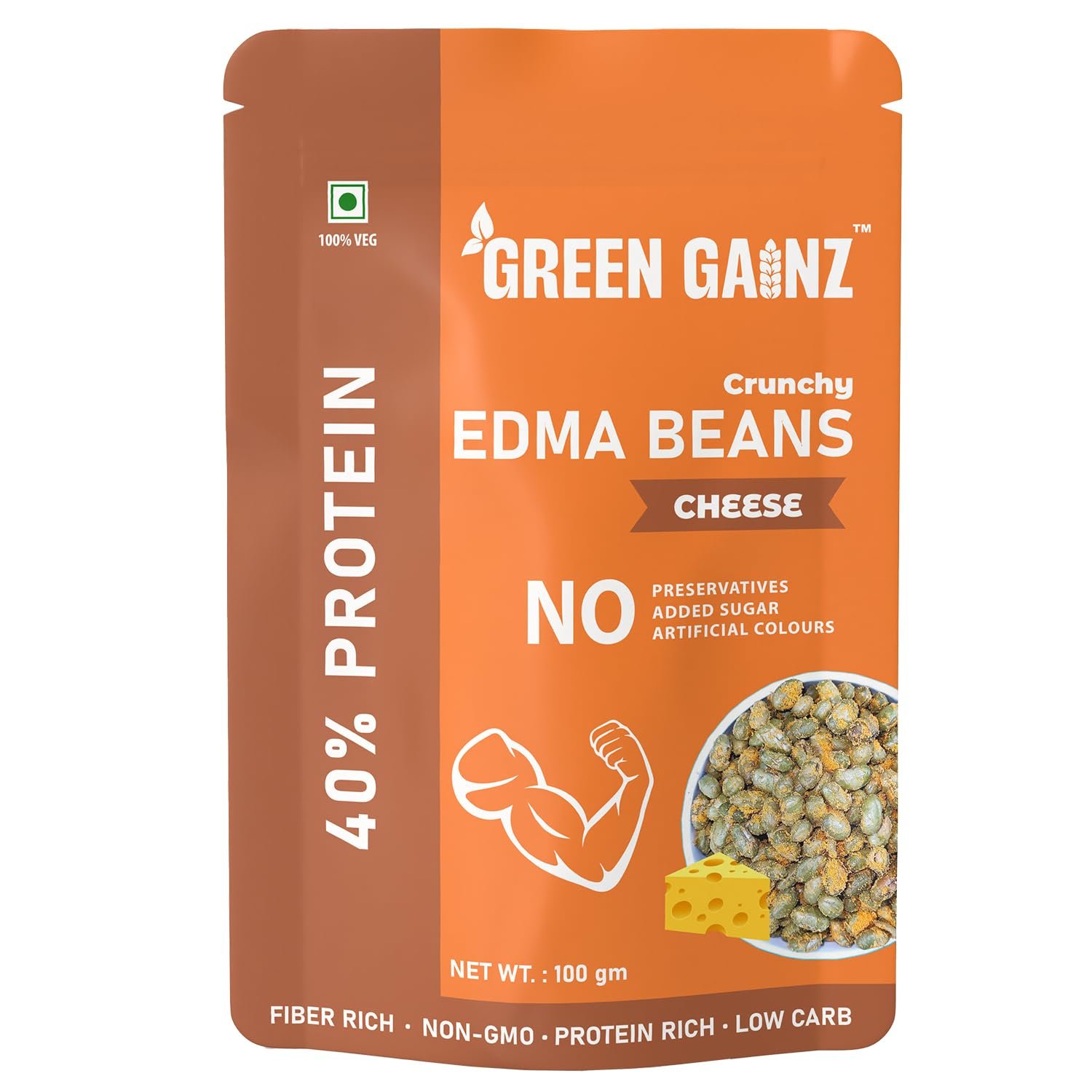 Green Gainz Roasted Edamame Cheese Flavour 100gm | 100% Veg High Protein Snack | No Added Sugar | Non-GMO | Rich in Fiber | No Gluten