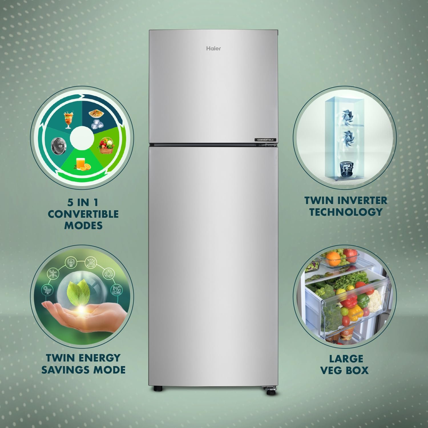 Haier 240L 3 Star Frost Free Top Mount Double Door Refrigerator|5 In 1 Convertible Modes|Twin Inverter|200% Faster Ice Making in 49 Minutes (HEF-253GS-P, Moon Silver)