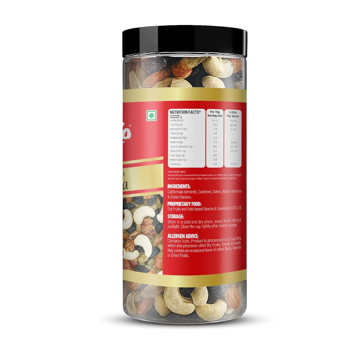 Split Cashews and California Almonds: Enjoy the creamy texture and nutty flavor of split cashews and California almonds, providing a generous dose of protein, healthy fats, and essential vitamins.