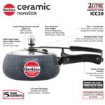 Hawkins 2 Litre Ceramic Nonstick Pressure Cooker, Induction Inner Lid Cooker, Granite Contura shaped Cooker, Blue (ICC20)