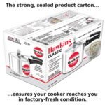 The Classic is Hawkins largest-selling, most popular range of pressure cookers – perhaps because of its attractive combination of features, benefits and price. Each Hawkins Classic features an inside-fitting lid. This design is inherently safer than conventional cookers. Thus Hawkins Classic pressure cooker is pressure-locked for safety – like a jetliner door! This range was the first to be introduced by Hawkins and has been kept fresh and current by numerous innovations and improvements over the years. The latest improvement is a 4.06 mm new improved induction base and a superior pressure regulating system that controls pressure to a narrower, more efficient range, reduces sprouting of frothy foods (such as dal) and is easier to insert and remove. The safety valve is located under the lid handle bar so that when it operates the steam is safely deflected downwards. The gasket has minimum exposure to steam inside the cooker, does not rub every time the product is opened and closed – so lasts longer. Stay-cool handles. Fixed sturdy pivot does not put pressure on the plastic handles as it is a part of the metal handle itself. Thus handles last longer. Recommended for use on gas, electric, halogen, ceramic and induction cooktops.