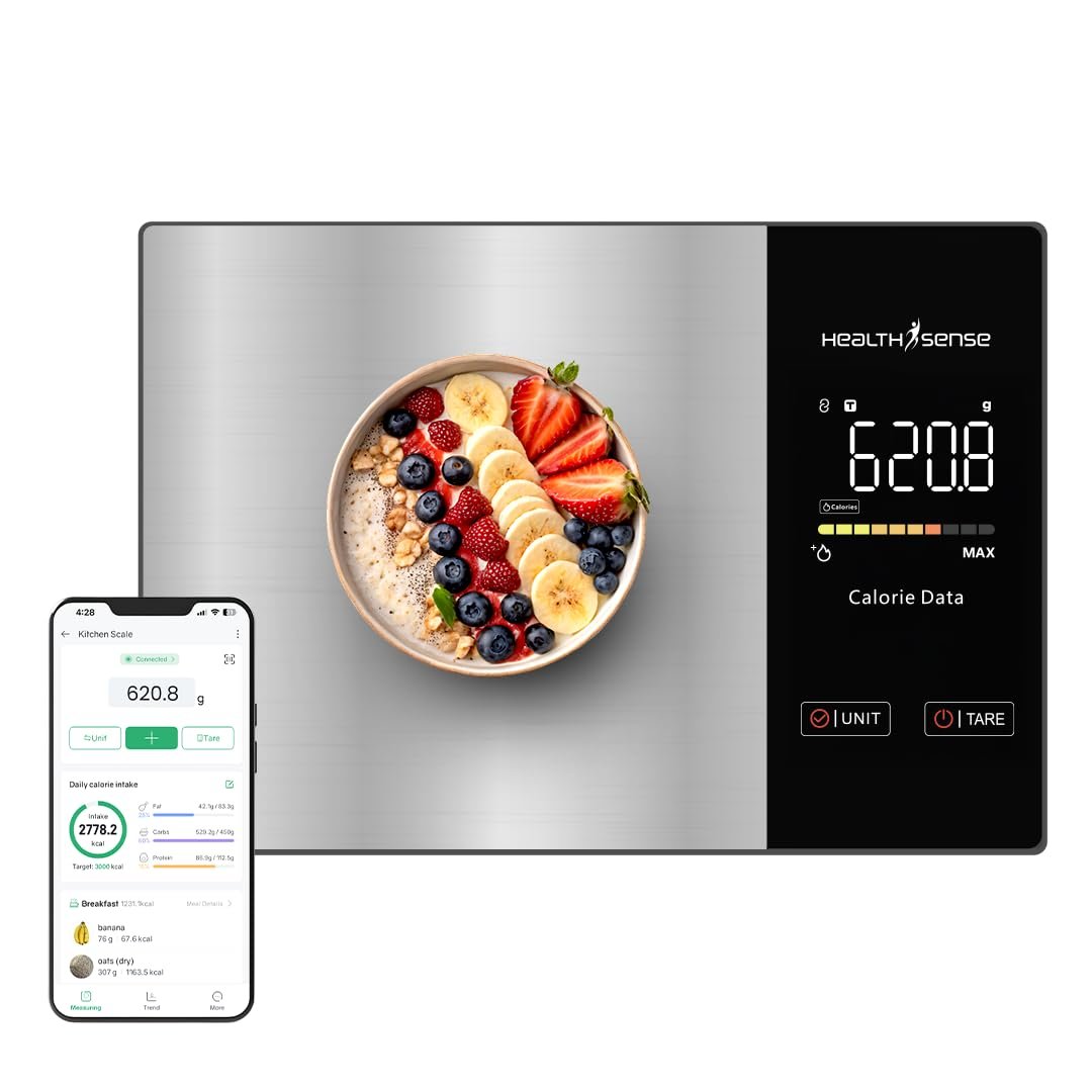 𝐒𝐌𝐀𝐑𝐓 𝐅𝐎𝐎𝐃 𝐖𝐄𝐈𝐆𝐇𝐈𝐍𝐆 & 𝐂𝐀𝐋𝐎𝐑𝐈𝐄 𝐓𝐑𝐀𝐂𝐊𝐈𝐍𝐆: Advanced kitchen weighing scale helps monitor daily calorie intake for better health management, delivering accurate measurements of weight, calories, protein, fat, and carbs.