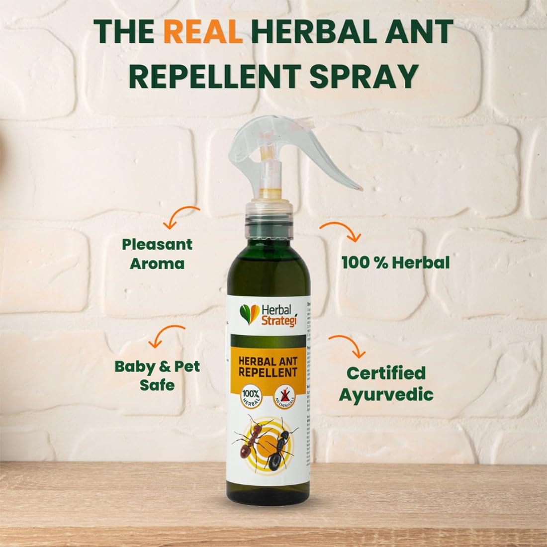 Herbal Strategi Ant Repellent Spray – 200ml | 100% Herbal & Ayurvedic Way to SHUU Ants Away | Guaranteed Results | Works on All Ant Types | For Home, Kitchen, Office & Garden