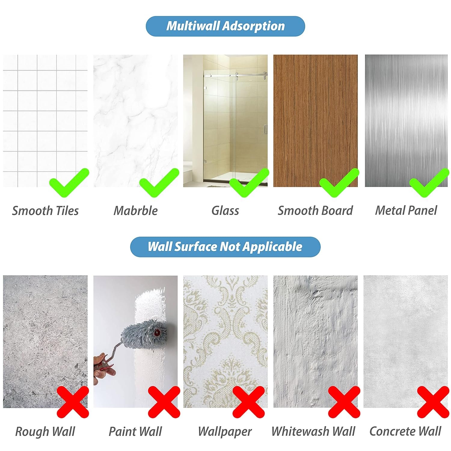 Ideal hooks for bathroom, kitchen, hallway, bedroom; also stick to doors or inside cabinets.