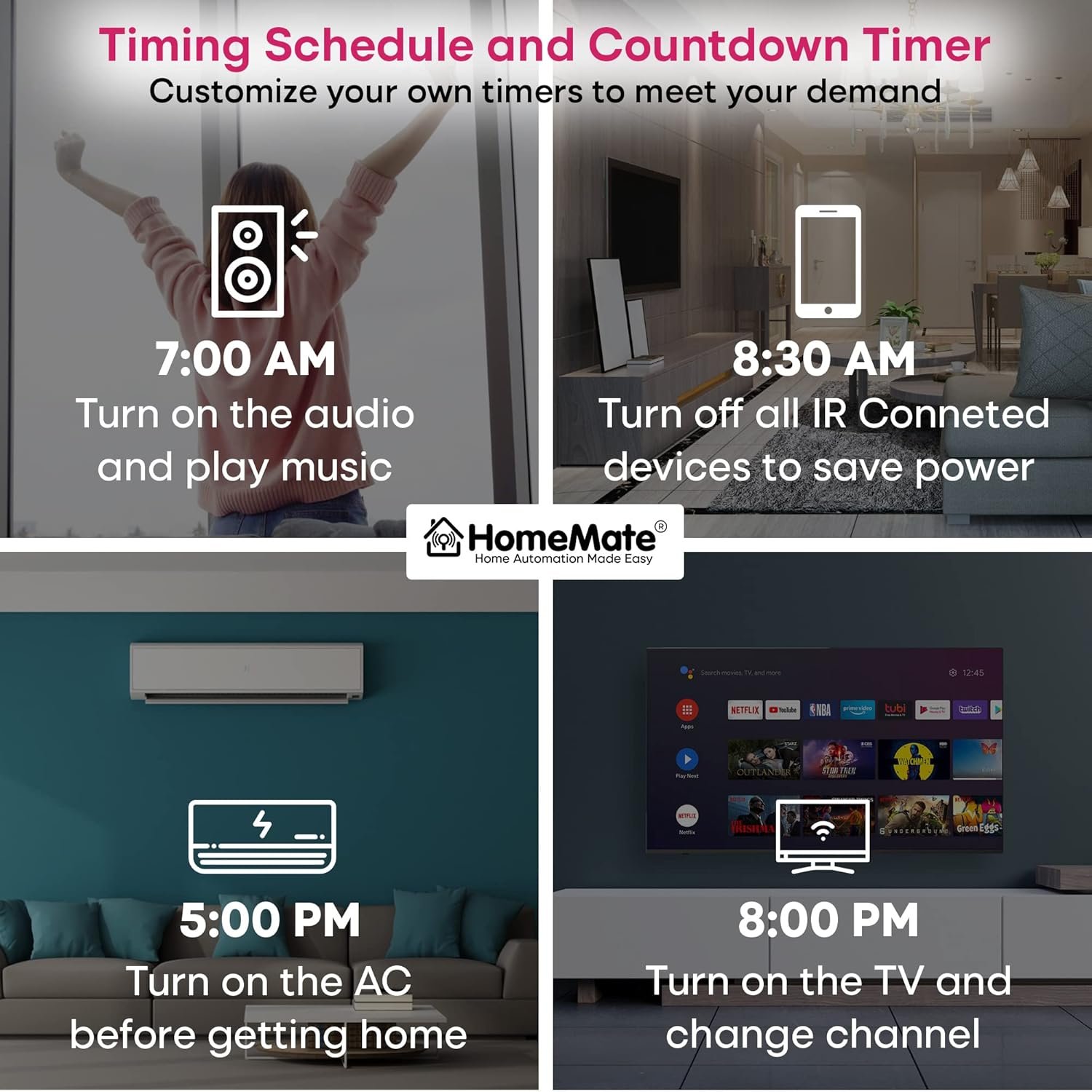 HomeMate® Wi-Fi Smart IR Control Hub (Pack of 1) | Smart Air Conditioner Remote | Compatible With Alexa, Google Home | All In One Infrared Remote For Smart Home | Black