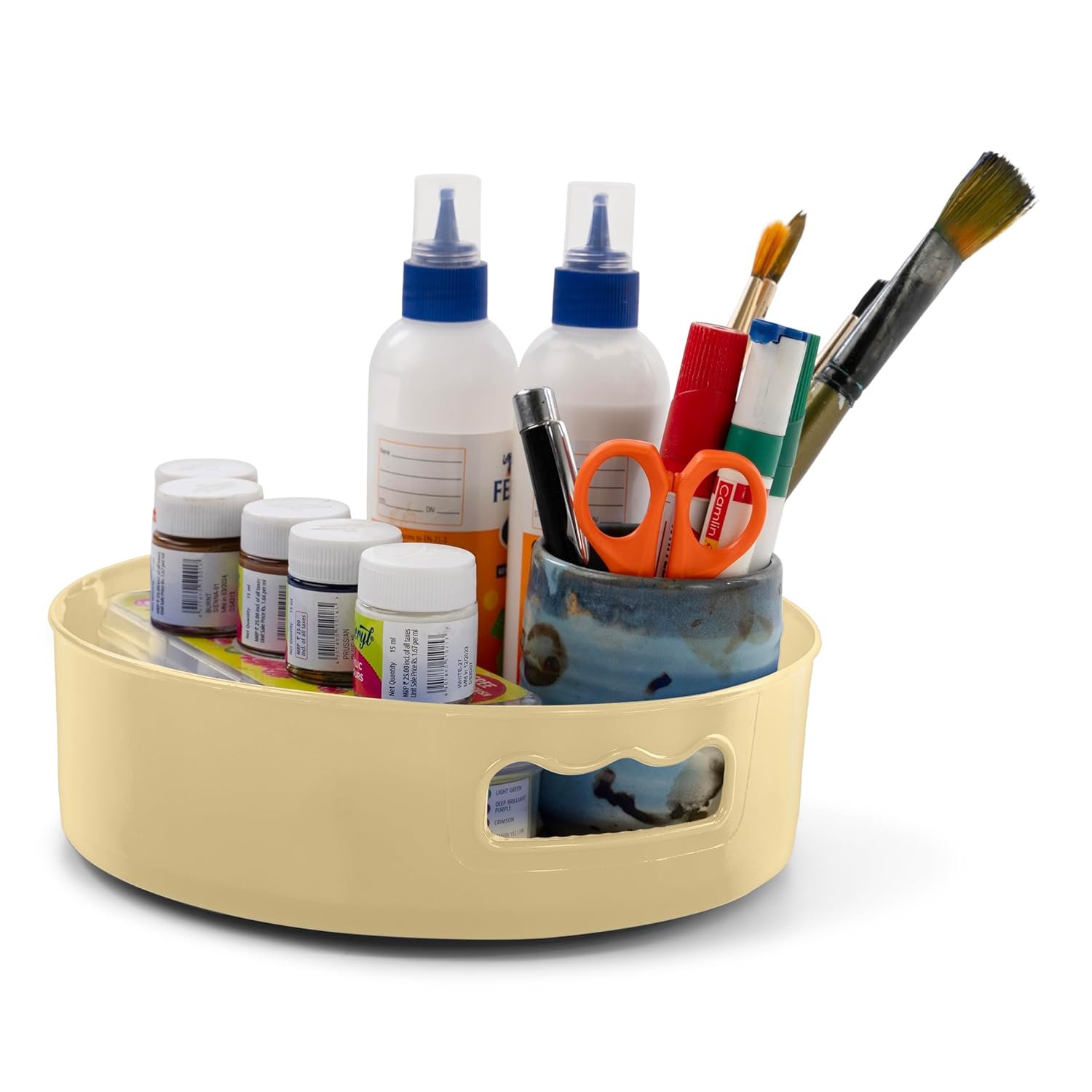 HomeWiz Multi-Purpose 360° Rotating Organizer Tray | Space-Saving Kitchen & Pantry Storage | Multi purpose Organization Rotating Tray | Easy-Access Turntable for Spices, Storage & More | Cream