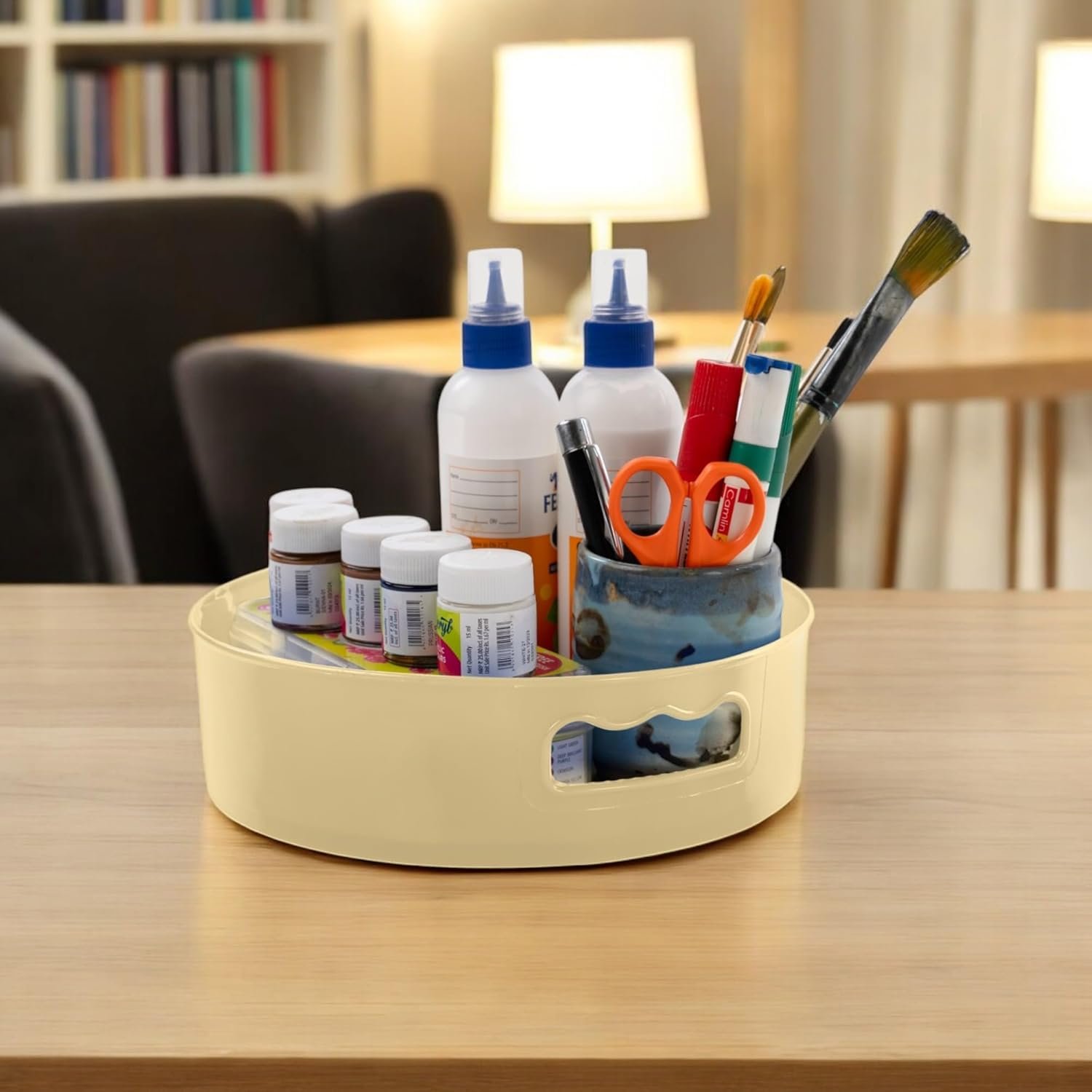 Space-Saving Design: Maximize your storage efficiency with this round organizer tray. Perfect for tight spaces like pantries, refrigerators, or cabinets, it helps keep your essentials neatly arranged and easy to find at a glance.