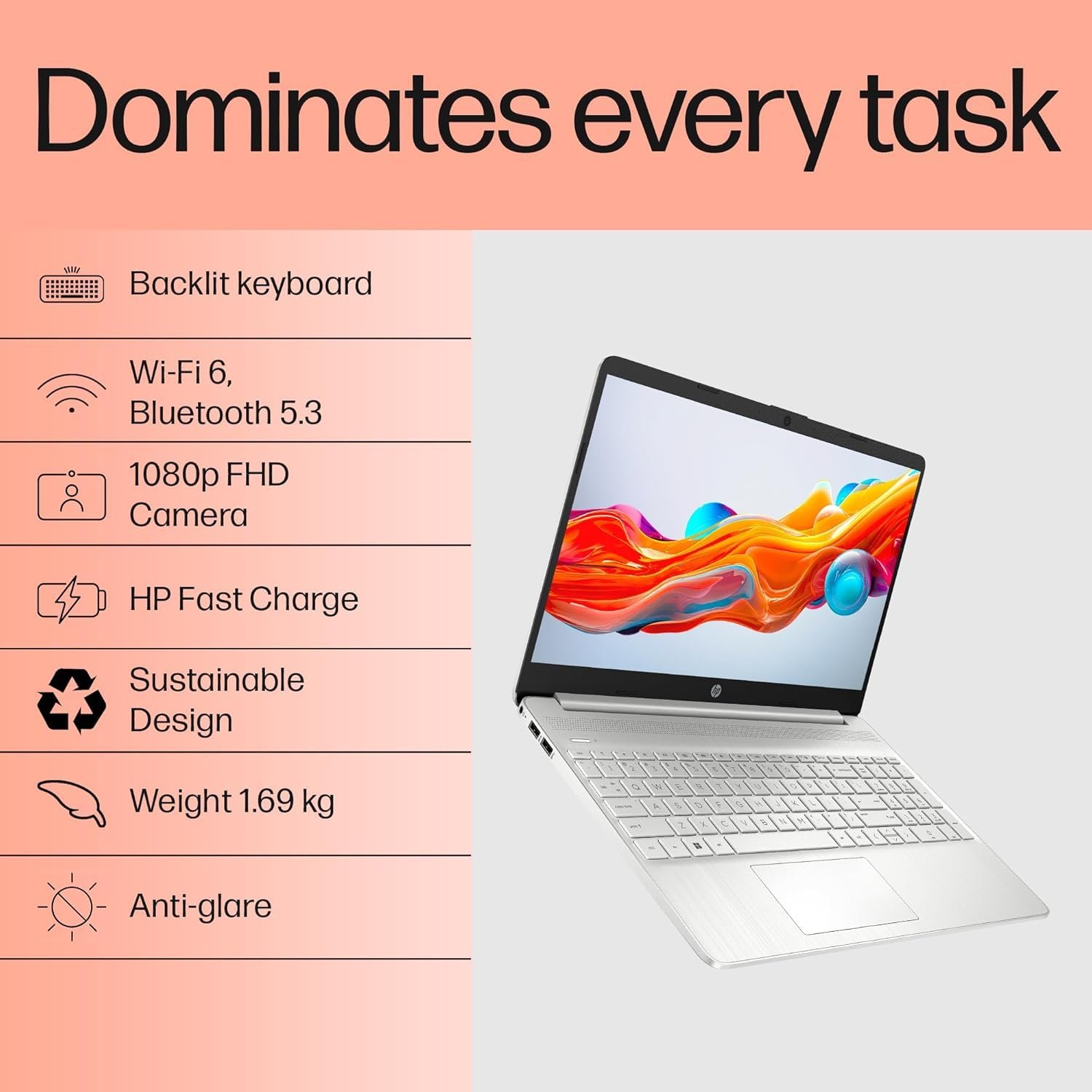 HP 15s, 12th Gen Intel Core i5-1235U,16GB DDR4, 512GB SSD (Win11, Office21, Silver, 1.69kg) Anti-Glare,15.6-inch(39.6cm), FHD Laptop, Intel Iris Xe Graphics, Backlit KB, HD Camera, fq5330TU