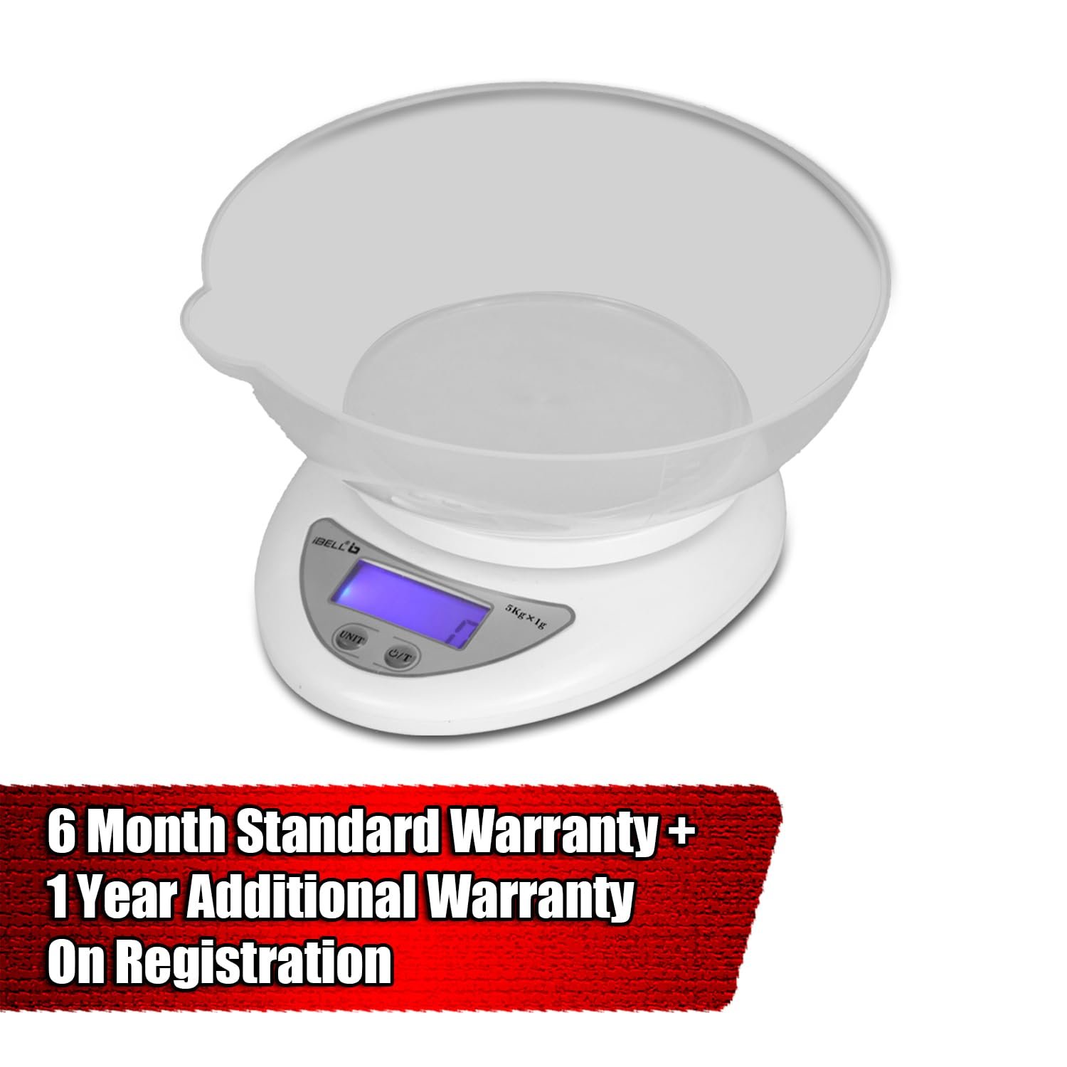 iBELL Digital Kitchen Weighing Scale for Health, LCD Display, High Precision Sensors, Tare Function, up to 5KG, Portable Food Weight Machine for Health, Fitness, Home Baking & Cooking – KS501M (White)