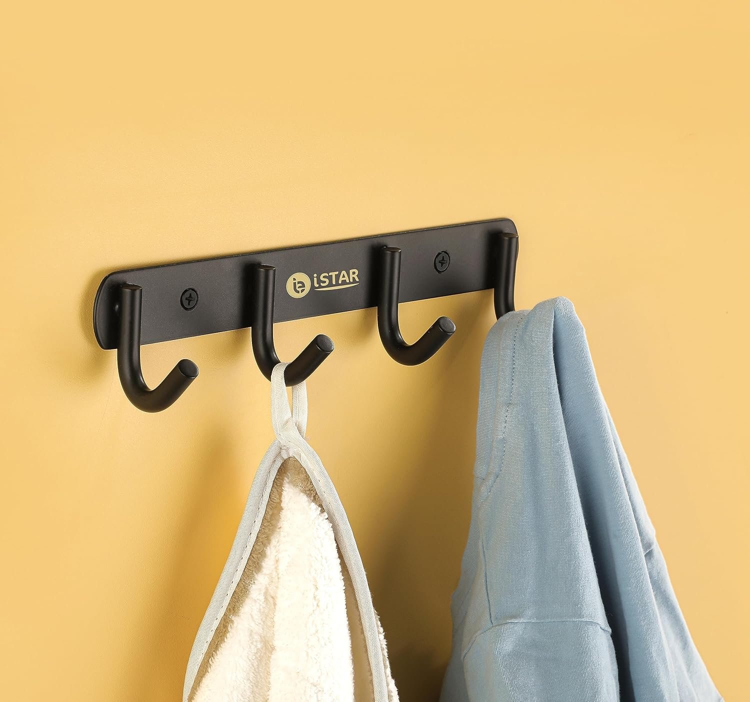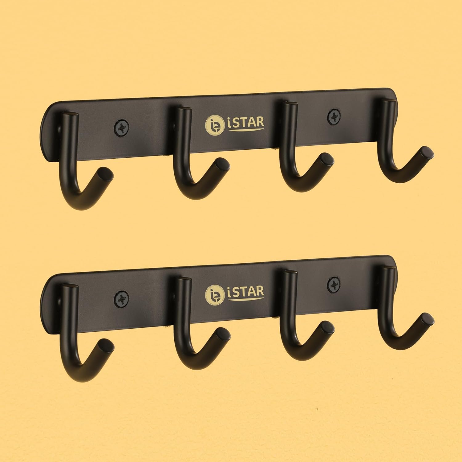 iSTAR 4 Pin Bathroom Cloth Hooks Hanger Door Wall Bedroom Bathroom Robe Hooks Rail for Hanging Keys,Clothes,Towel Steel Hook,Stainless Steel (Black Pack of 2)