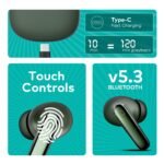 itel T11 Pro TWS in-Ear Earbuds with 360° Deep Bass, Quad Mic Along with Noise-Free Calls, 13mm Drivers, Bluetooth v5.3, 42 Hrs Playtime, Ergonomic Design, IPX5 Water Resistance (Ashy Green)