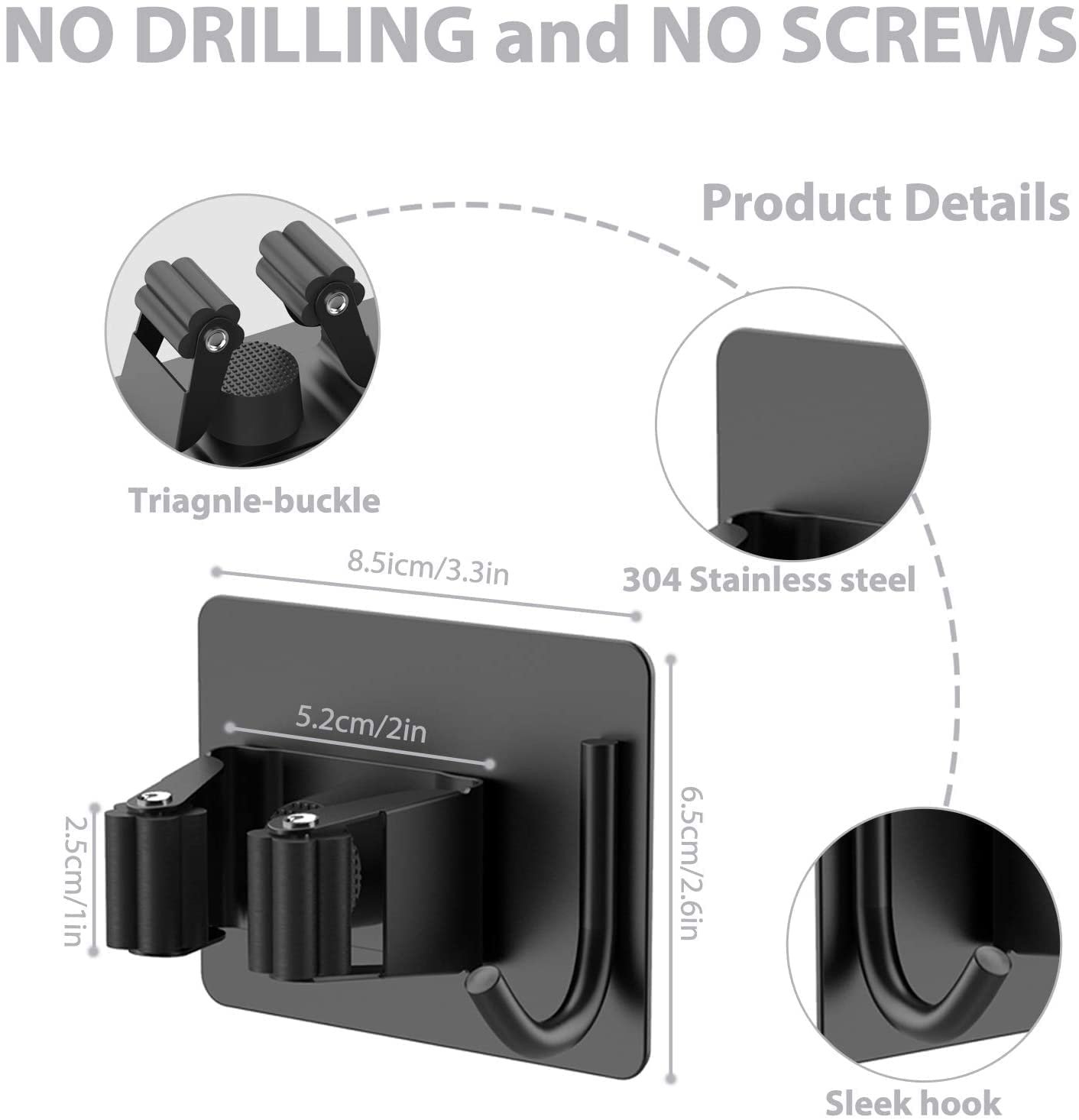 Specification Material: SUS 304 Stainless Steel Size: 8.5 x 6.5 cm/ 3.3 x 2.6 inches Color: Silver/Black ( multicolour) Broom Holder