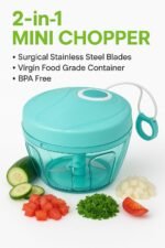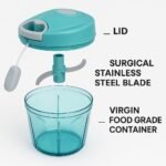 This vegetable chopper comes with 2 sharp stainless steel blade places in different position to cover the entire height of the chopper, and manage to chop very easily in seconds.