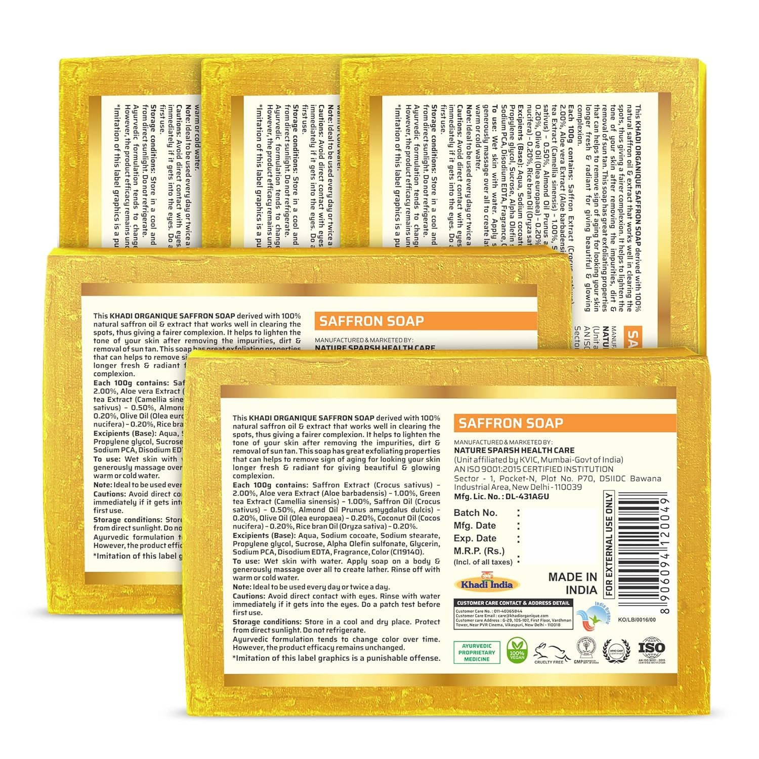Khadi Organique Natural Herbal Saffron Soap Pack of 5
