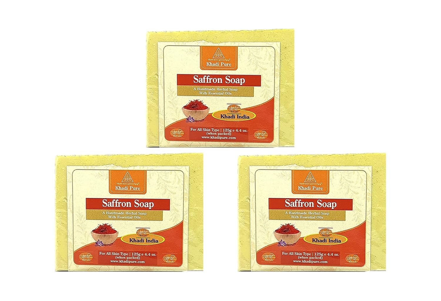 Khadi Pure Herbal Saffron Soap – Pack of 3 (375g)