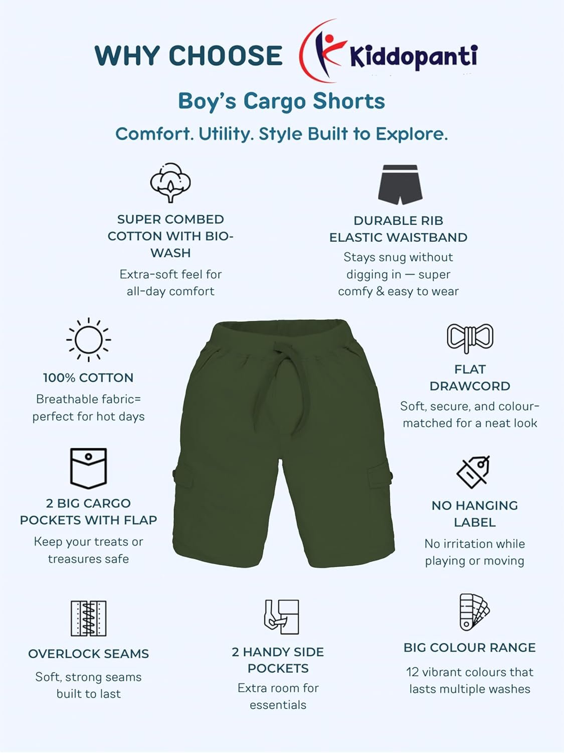 8 reviews for KiddoPanti Boys Knit Solid Cargo Shorts | 100% Cotton | Comfortable Rib Waistband | 2 Front Pockets & 2 Cargo Pockets | Sport Bermuda Half Pant for Boys