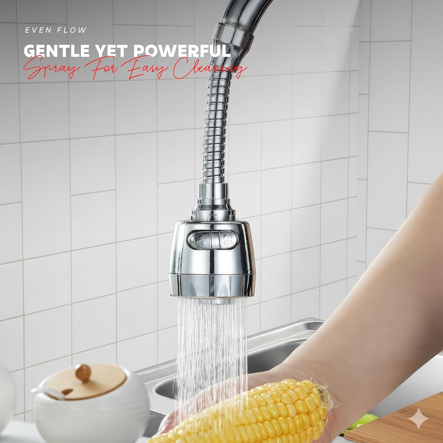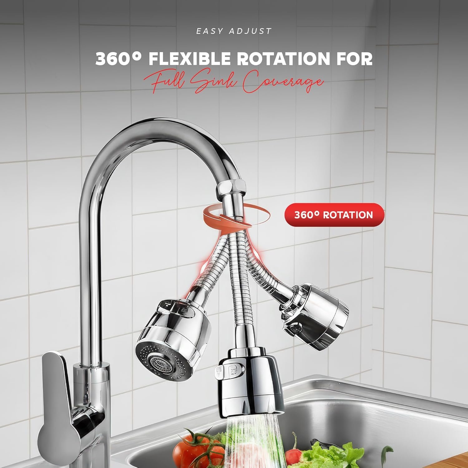 🔄 360° Rotating – Flexible Water Flow Easily adjust direction for washing dishes, vegetables & cleaning sinks with precision