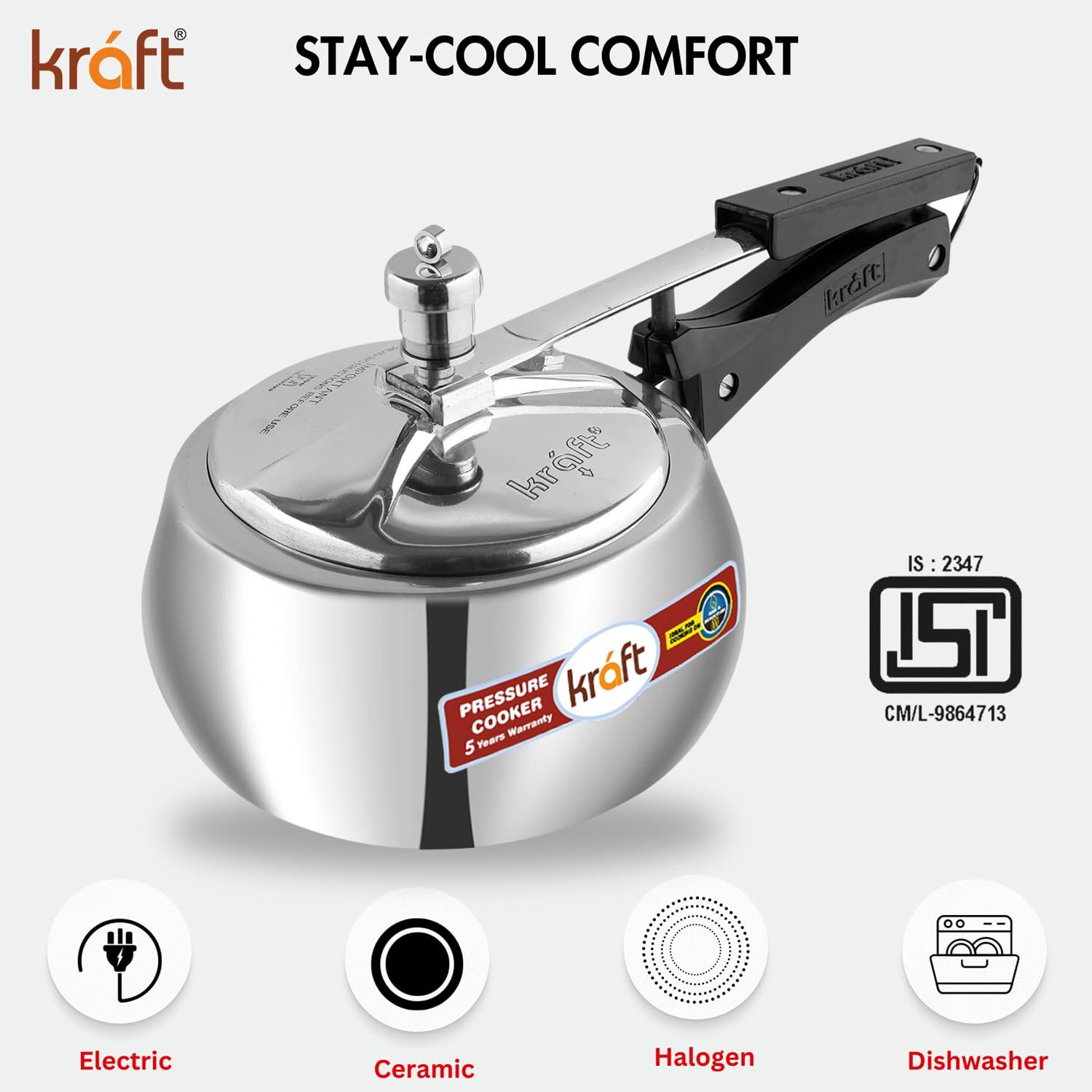 2 reviews for Kraft Stylo Handi Shaped Aluminium Inner Lid Pressure Cooker Medium – 3 Litre/Healthy Cooking, Long Lasting/Induction Friendly / 5 Years Warranty/ISI Certified – Silver