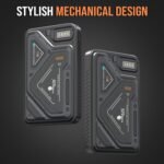 Futuristic Mechanical Design : Built with a bold cyber-tech aesthetic featuring geometric panels, illuminated indicators, and a rugged outer body for a premium, high-tech look that stands out from regular power bank wireless
