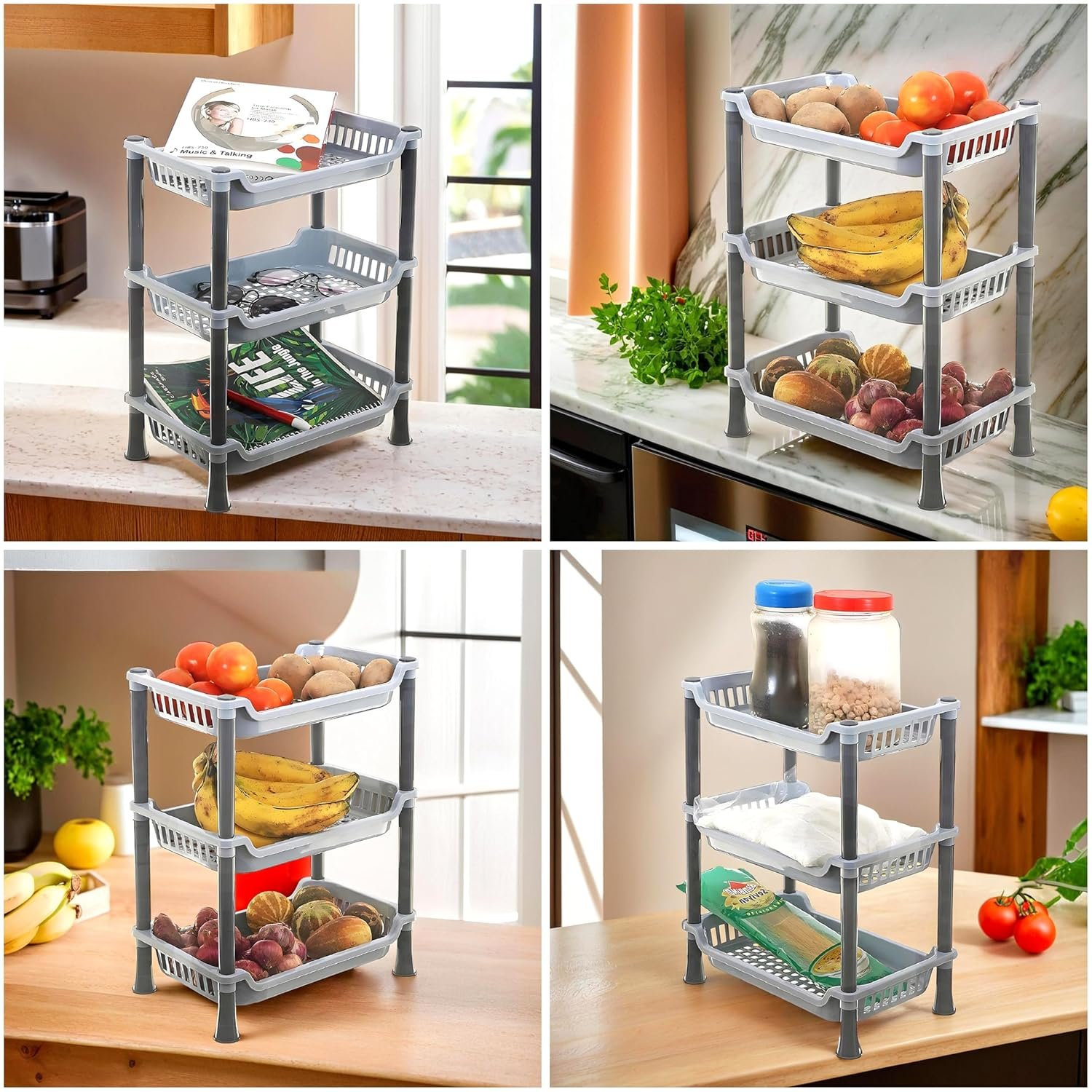 13 reviews for Kuber industries Plastic 3 Layer Multi-Purpose Kitchen Storage Basket Rack|Vegetable Basket for Kitchen (Grey Tiered Shelf)