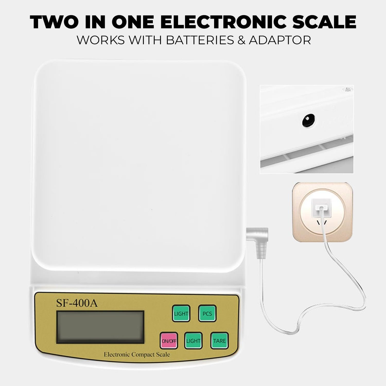 UPGRADED VERSION SF400A Digital Weighing Machine – This upgraded version of premium quality digital small weighing sf400a weight measuring machine weight machine sf400a food weigh machine is made-up heavy-duty ABS Plastic material and comes with the latest in-built chipset mechanism inside for weighing the food vegetables supplement etc.