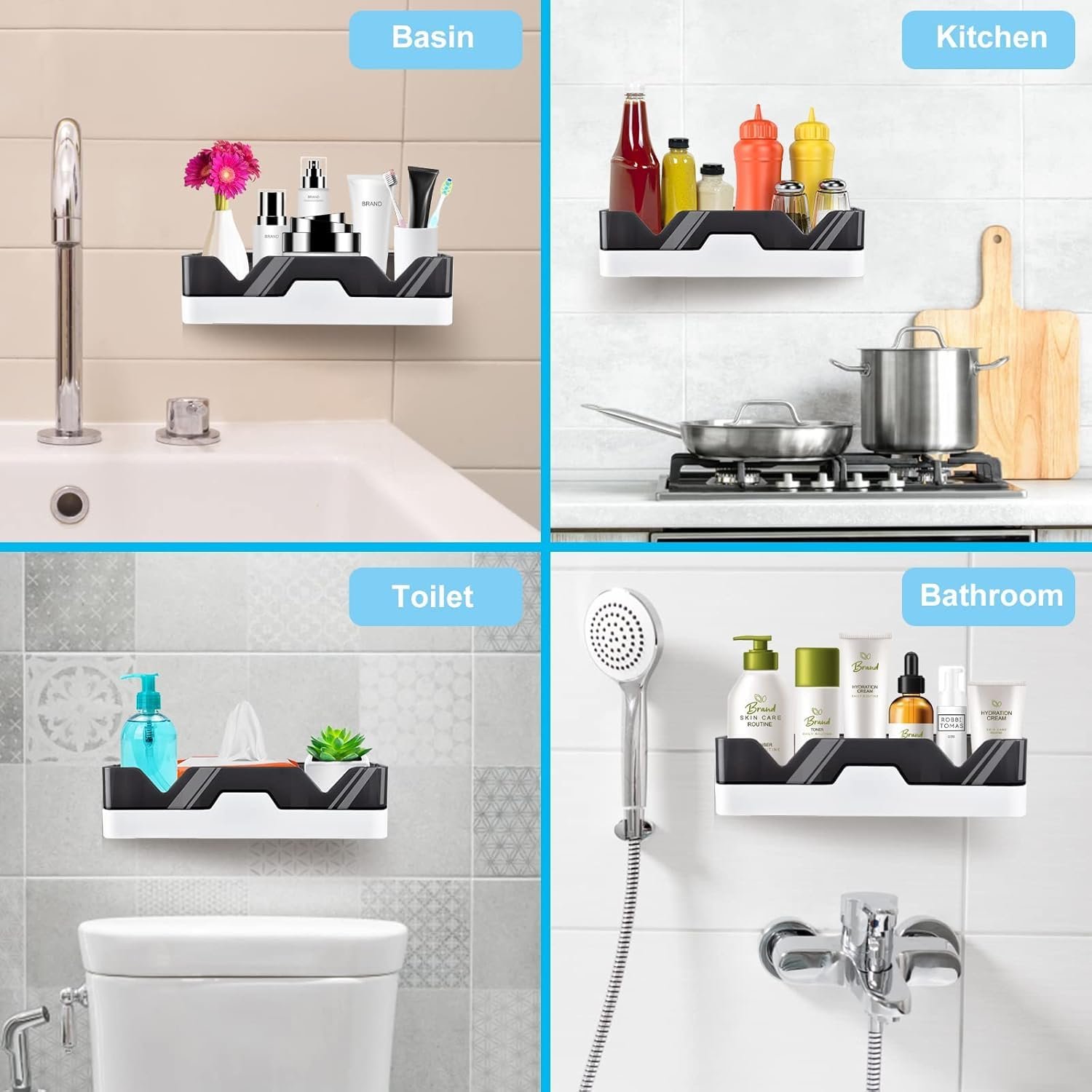 Leawall Self-Adhesive Plastic Bathroom Shelf – Sturdy, Stylish, and Convenient Storage Solution for Your Bathroom Transform your bathroom with the Leawall self-adhesive plastic corner shelf, designed to provide a durable, rust-proof, and space-saving storage solution. Crafted from heavy-duty plastic, this shelf is built to withstand everyday use, ensuring long-lasting performance without the worry of corrosion. Its sleek black finish adds a modern touch to your bathroom, seamlessly complementing any decor. With easy installation, the self-adhesive design allows you to mount the shelf without drilling, making setup quick and hassle-free. Each shelf comes with four strong adhesive stickers for secure placement, offering a reliable and damage-free mounting solution for any corner of your bathroom. The Leawall bathroom shelf is a versatile organizer, perfect for storing soap, toiletries, towels, and other bathroom essentials. Use it as a corner shelf, soap holder, or general bathroom organizer to keep your space tidy and efficient. This set of two shelves maximizes your bathroom storage, helping you optimize space and maintain a clean, organized environment. Upgrade your bathroom with Leawall, the trusted brand for smart, practical, and stylish home storage solutions.