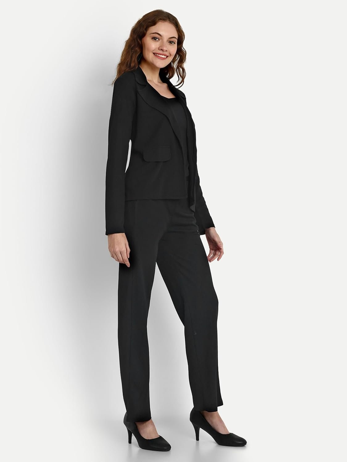Fabric is good… quality is good … Stretchable… Classy look… Nice color.. But one problem, inner piece is like a crop top and upper blazer has no pockets… very disappointed