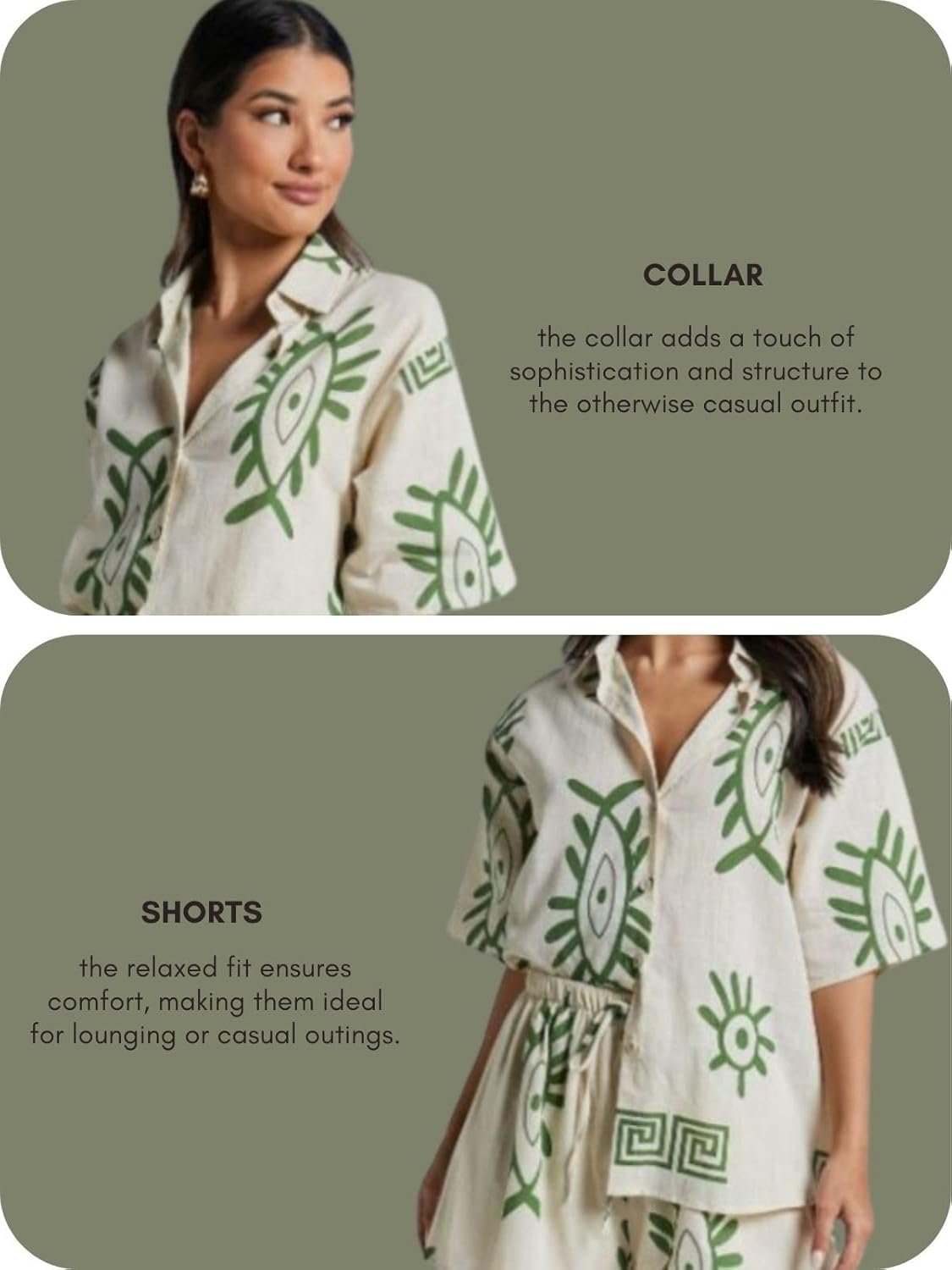 Customers praise the coordinated set’s fabric quality, noting its good thickness and stitching, while appreciating its lightweight, breathable material that’s perfect for summer travel and beach holidays. Moreover, the outfit receives positive feedback for its style, comfort, and value for money, with customers finding it worth the price. The print quality is also well-received, with one customer highlighting the unique geometric design.