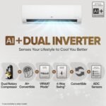 Powerful Cooling with DUAL Inverter Compressor: Experience rapid and consistent cooling with LG’s DUAL Inverter Compressor. This advanced technology ensures the AC cools faster, lasts longer, and runs much quieter than conventional models while maximizing energy efficiency
