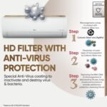 Key Features: Dual Inverter Compressor, AI Convertible 6-in-1, VIRAAT Mode, HD Filter with Anti-Virus Protection, ADC Sensor, Cools at 55⁰ C, Stabilizer free operation within 120V-290V voltage range , Temperature Display type – Magic Display (LED) for temperature and timer modes, Noise Level: IDU – 31 (db) & ODU – 56 (db), 15 MTS Airthrow