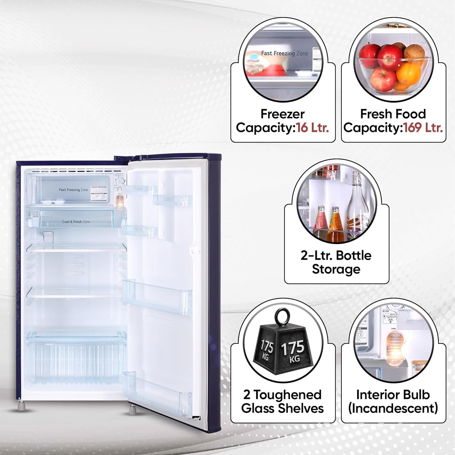 Capacity 185 litres: Suitable for families with 2 to 3 members/ Couples / Bachelors | Freezer capacity: 16 L, Fresh food capacity: 169 L