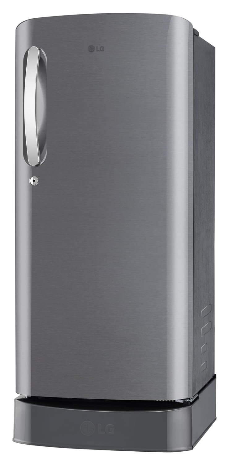 LG 185 L, 5 Star, Smart Inverter Compressor, Direct-Cool Single Door Refrigerator (GL-D201APZU.BPZZEBN, Shiny Steel, Base stand with drawer & Fast Ice Making)