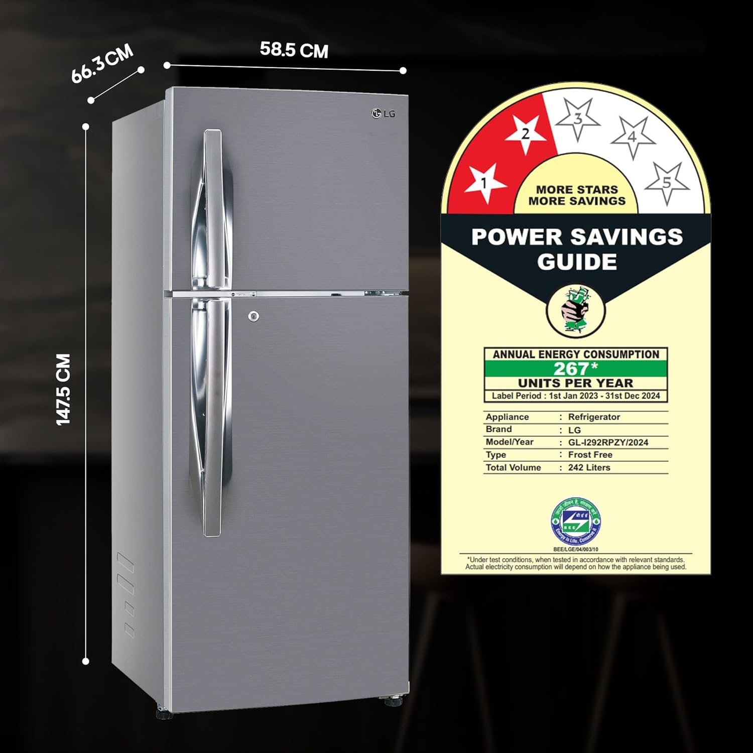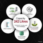 Capacity 242 ltrs: Suitable for families with 3 to 4 members I freezer capacity: 62 L; fresh food capacity: 180 L
