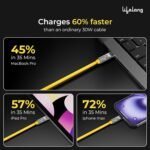 Great Quality and Super Fast ChargingThe Lifelong 100W PD USB-C to USB-C cable is solidly built with its braided, tangle-free design and feels durable in daily use. The digital speed indicator is a smart touch—it actually shows charging speed in real time, which is super handy. Works perfectly with phones, laptops, and tablets, delivering fast charging and stable data transfer. At 1.25M, the length is just right for convenience without being messy.