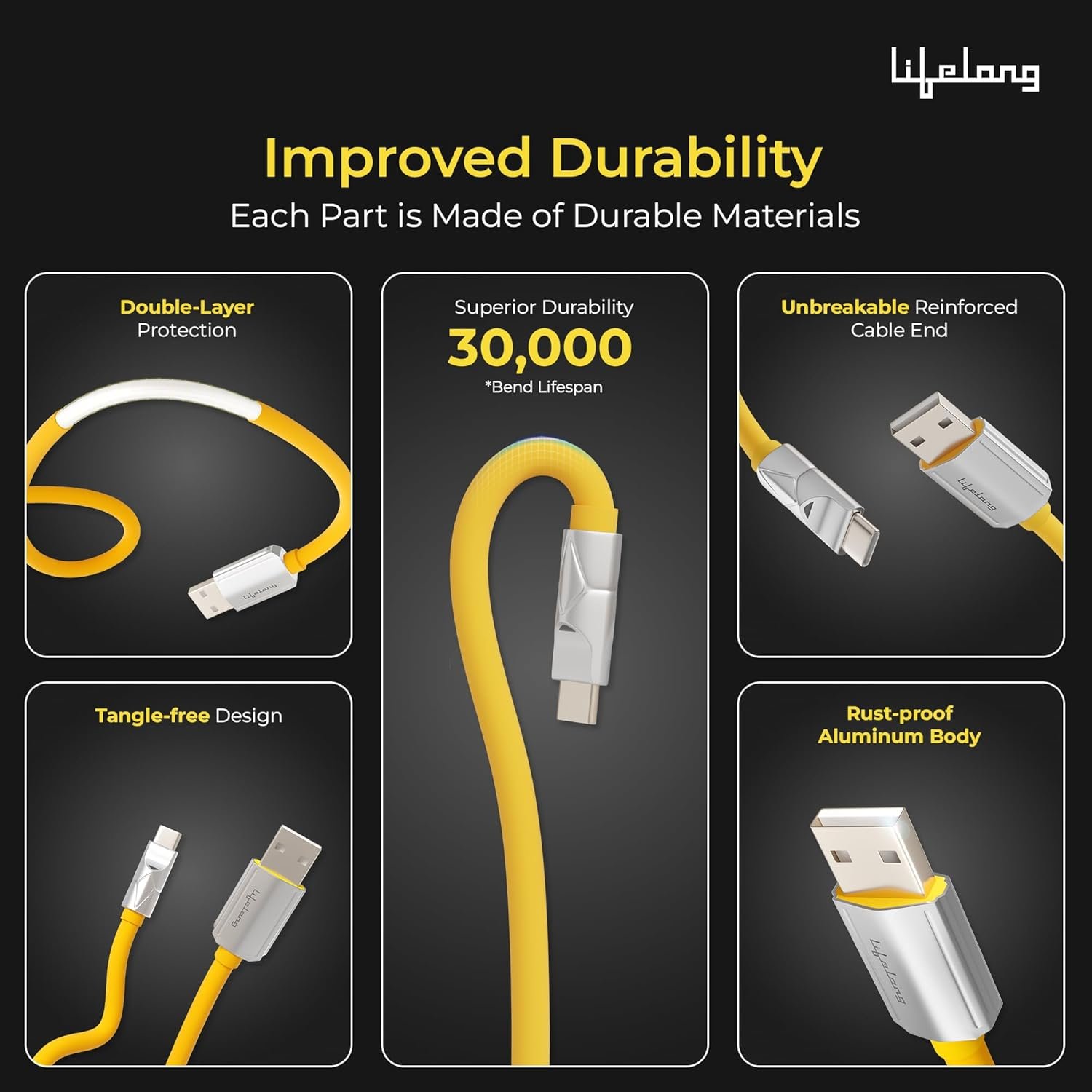 Lifelong Electronics 66W PD USB Type A to Type C Fast Charging Cable | High Speed Transfer Data Cable | Aluminum Alloy, Strong PVC & Tangle Free | iPhone 16/15/14, Android, Laptop, Tablet etc | 1.25M