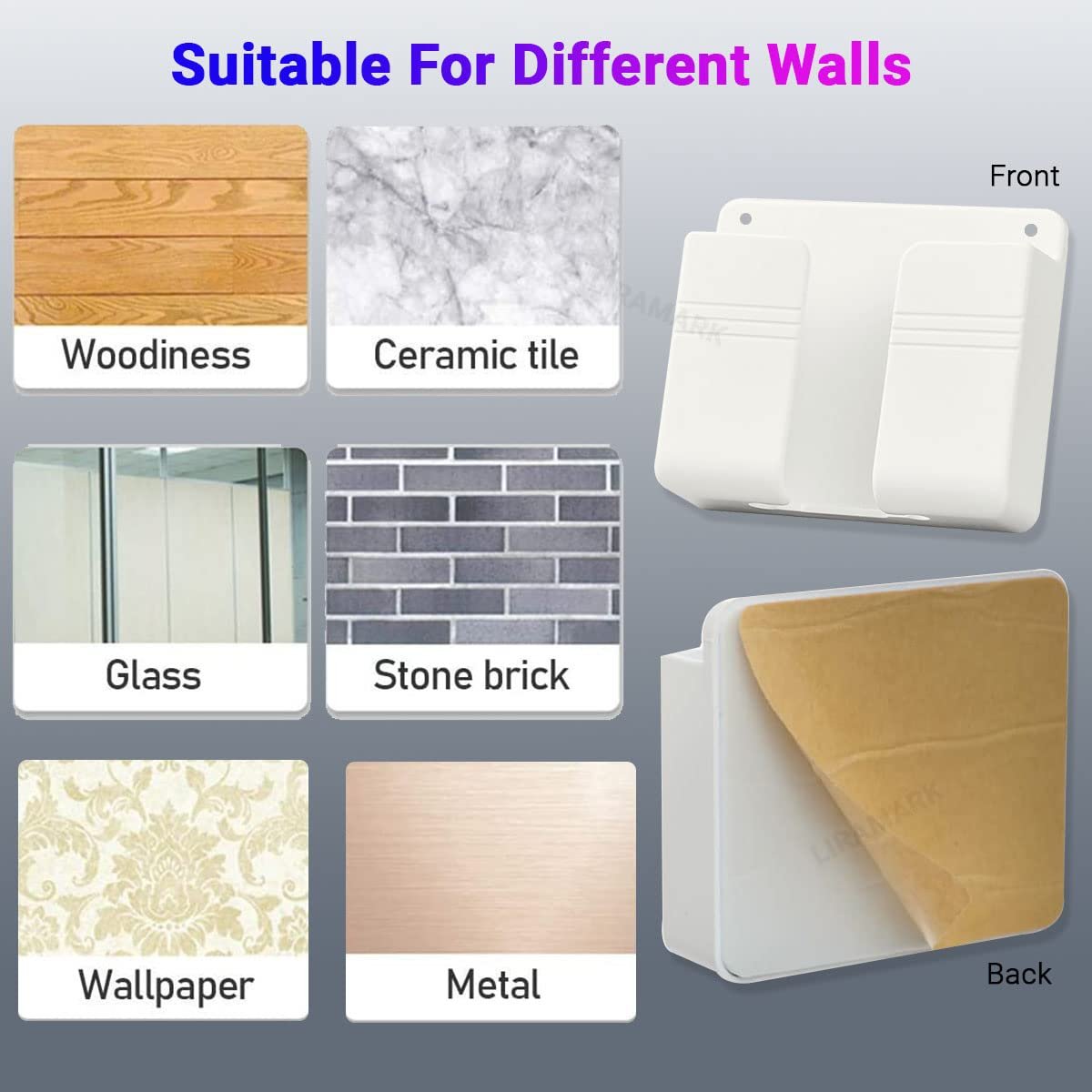 Wall Phone Holder: Universal mobile phone holder for most of smart phone models, offering a safer charging stand for your phones. Note: The total thickness of devices should be less than 30mm.