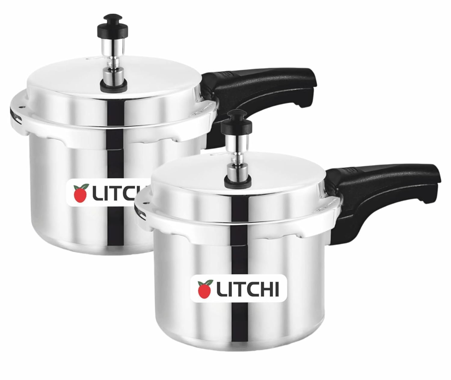Litchi Aluminium 3, 3 Litres Pressure Cooker | Outer Lid | Faster & Healthy Cooking | Gas Stove Compatible | ISI Certified | 5 Years Manufacturer’s Warranty | Silver