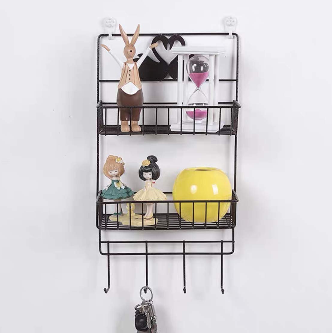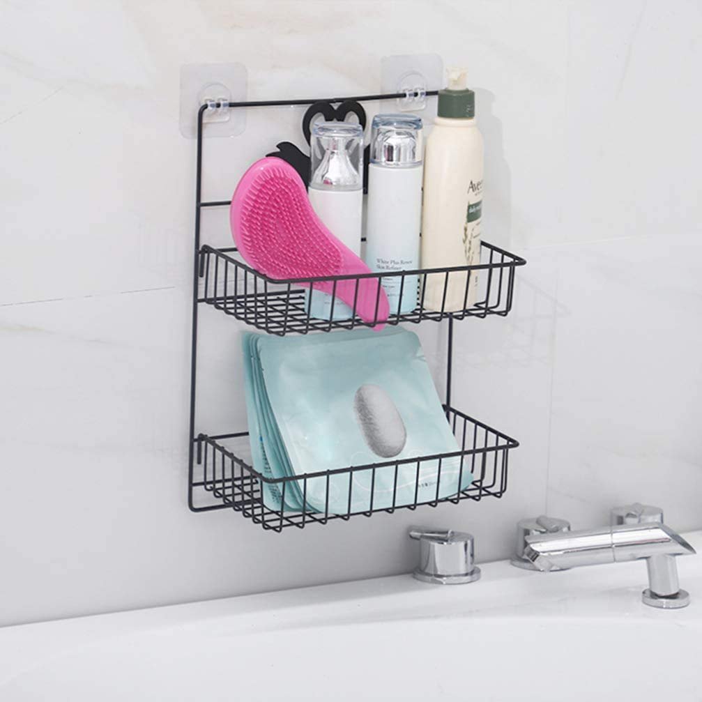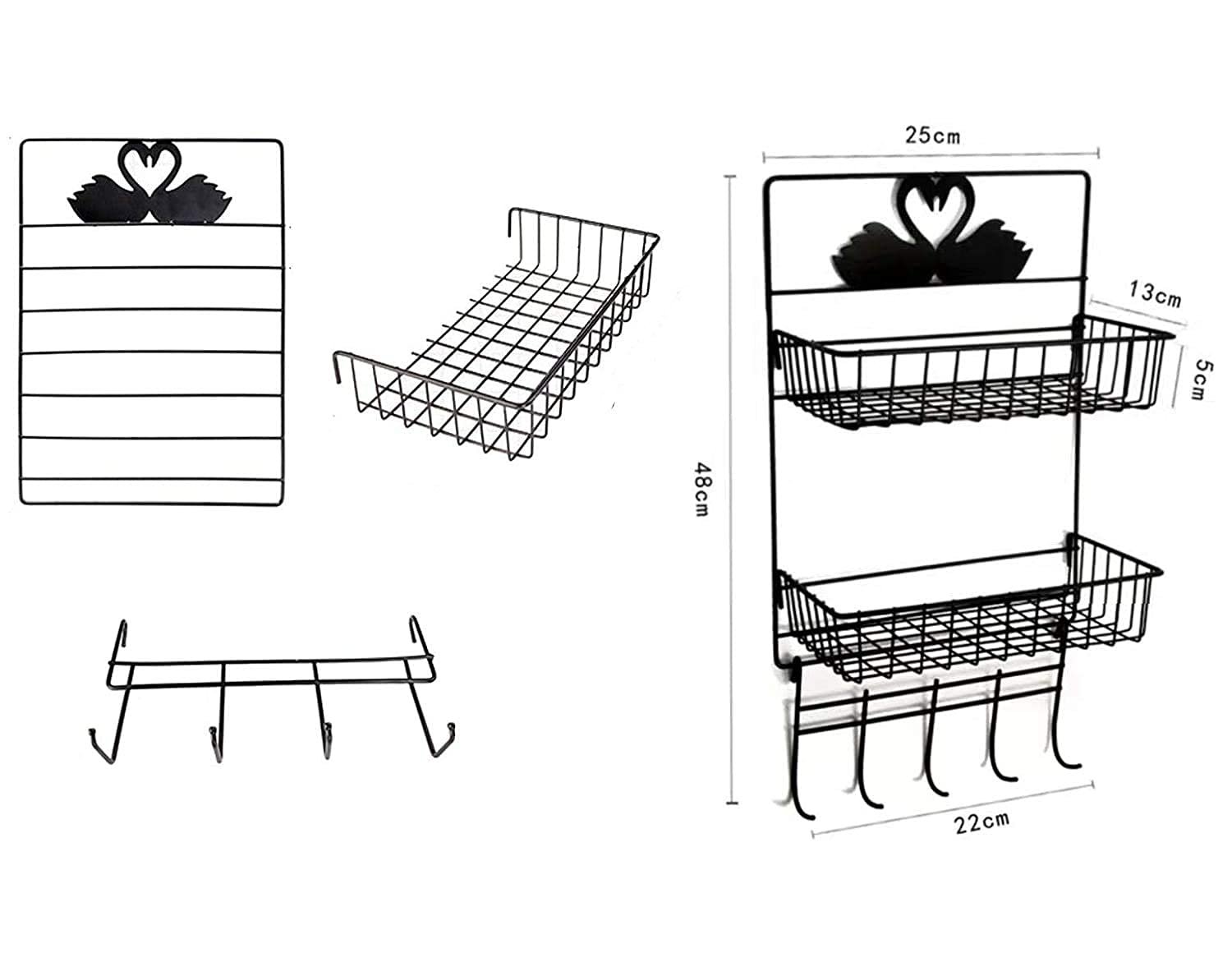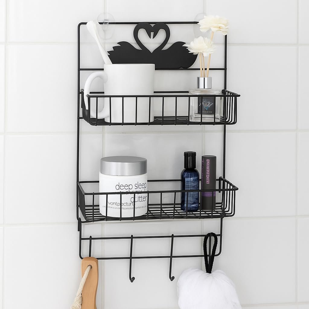 LUKZER presents a versatile and elegant solution for your home organization needs. This 2-tier multi-purpose metal storage rack is designed to bring order and style to your bathroom, kitchen, or any space requiring efficient storage. Crafted from durable, high-quality metal with a sleek black finish, it’s built to last and resist rust, making it ideal for humid environments like bathrooms. The top tier is perfect for holding toiletries, shampoo, conditioner, soaps, or kitchen essentials like spices and condiments. The lower tier offers additional storage for larger items or overflow. Below the baskets, a set of convenient hooks provides extra hanging space for towels, loofahs, brushes, keys, or kitchen utensils. Installation is a breeze with the included strong adhesive hooks, allowing for drilling-free mounting on smooth surfaces such as tiles, glass, or metal. The open wire design ensures proper ventilation, preventing water buildup and keeping your items dry and clean. Its compact yet spacious design makes it an excellent space-saving solution for smaller apartments, dorms, or RVs, maximizing vertical storage. Beyond the bathroom, this rack serves as an excellent kitchen organizer for spices, oils, or small appliances. It can also be used as a refrigerator broadside storage unit, adding convenient access to frequently used items. Its minimalist and modern aesthetic, featuring a charming swan design detail, seamlessly blends with any home decor. Organize your essentials efficiently and beautifully with the LUKZER 2-Tier Metal Storage Rack – the ultimate solution for a clutter-free home.