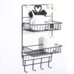 Lukzer 2-Tier Metal Multipurpose Storage Organizer Rack with Hooks – Wall Mounted Shower Caddy, Spice Rack & Refrigerator Side Shelf for Home, Kitchen & Bathroom Organization