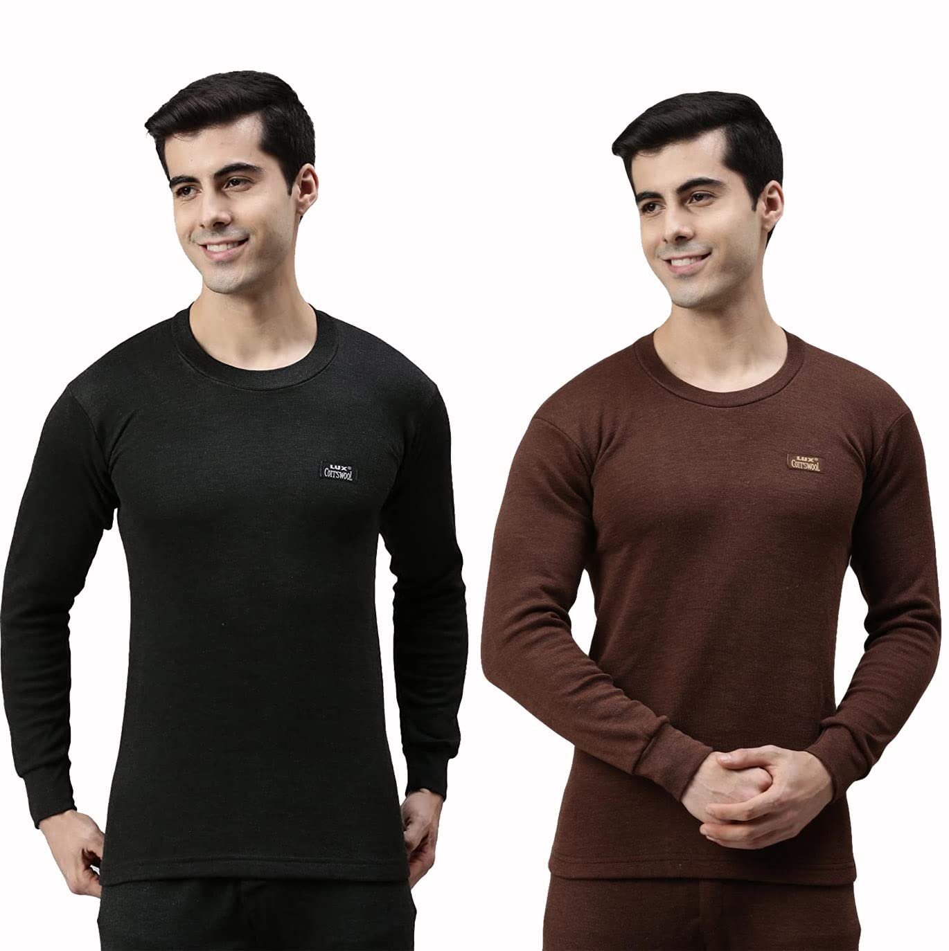 Lux Cottswool Men Round Neck Full Sleeves Upper Thermal – Pack of 2 (Multi-Coloured_85 cm)