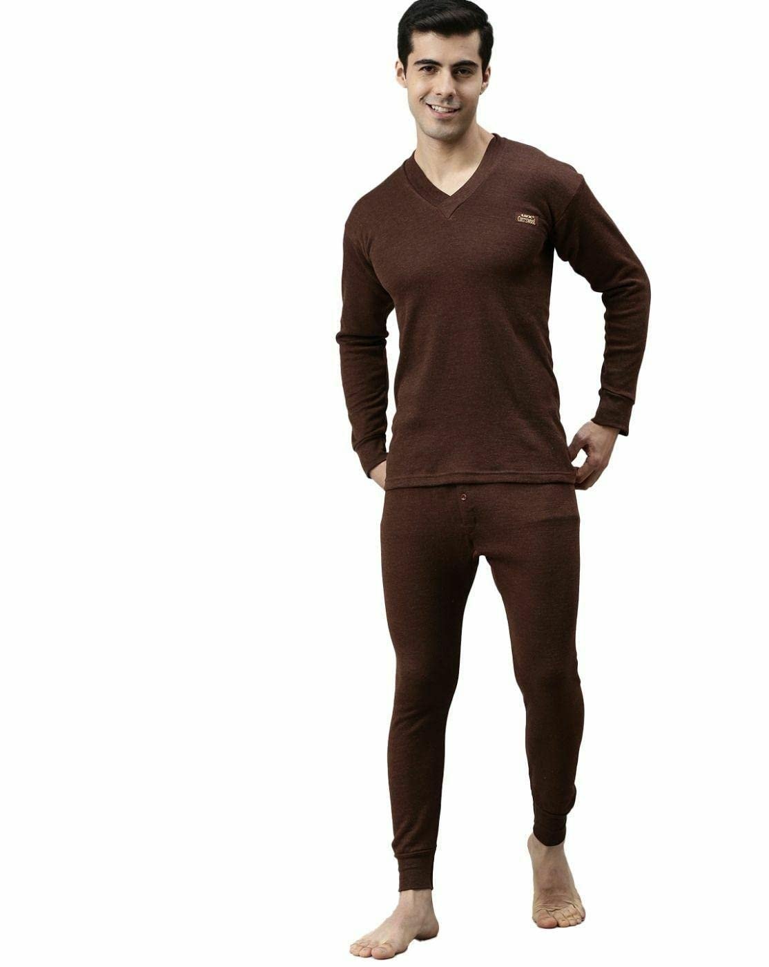 Lux Cottswool Men’s Brown Round Neck Full Sleeves Premium Thermal Upper – Pack of 3 (#CW-RNFS-100cm)