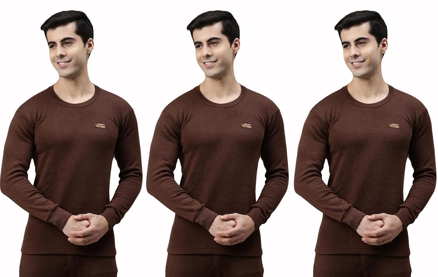 Lux Cottswool Men’s Brown Round Neck Full Sleeves Premium Thermal Upper – Pack of 3 (#CW-RNFS-85cm)