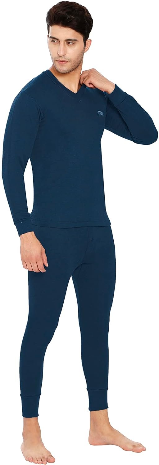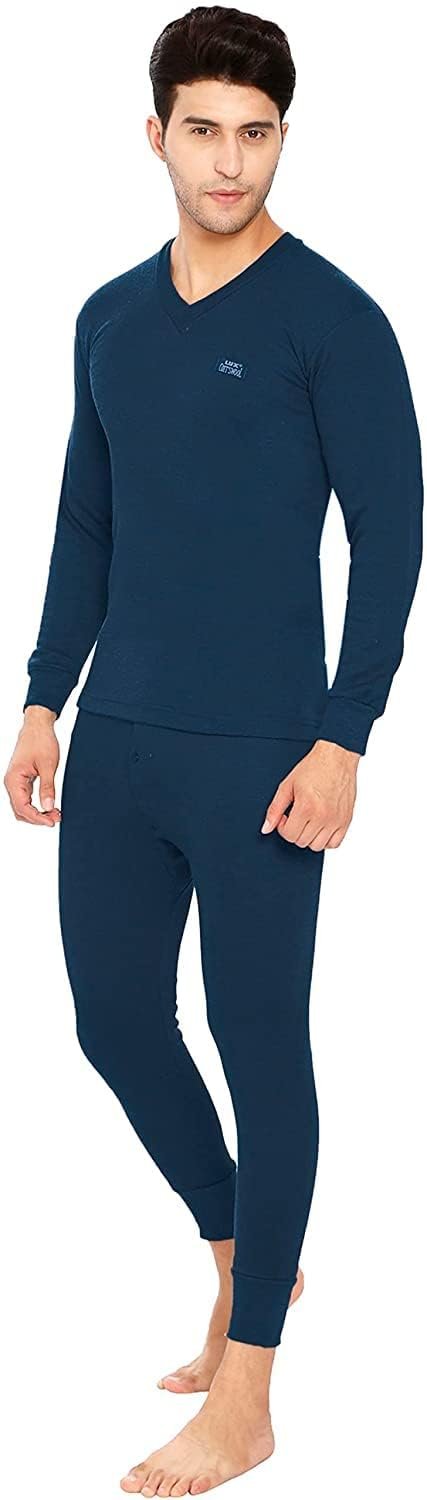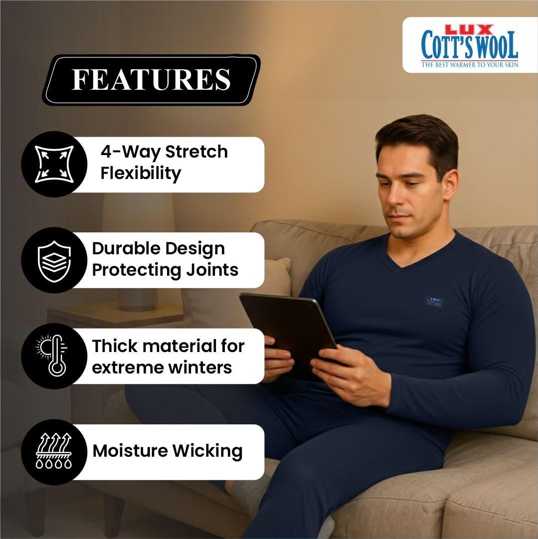 Lux Cottswool Men’s Cotton Thermal Set | Top & Bottom Body Warmer | V-Neck Winterwear | Full Sleeves & Snug Fit with Stay Warm Technology | Skin Friendly with Superior Heat Retention